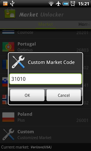 2. Habilitar Unlocker Mercado e desbloqueio automático (por padrão é configurado Verizon)